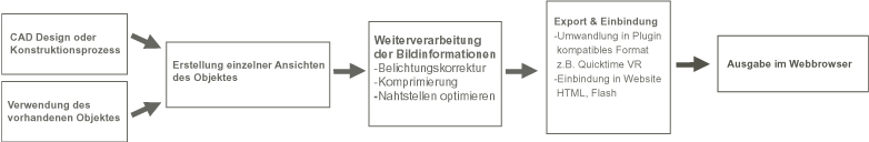 Einzelne Abläufe vom Design bzw. Konstruktionsprozess bis hin zur Darstellung im Webbrowser