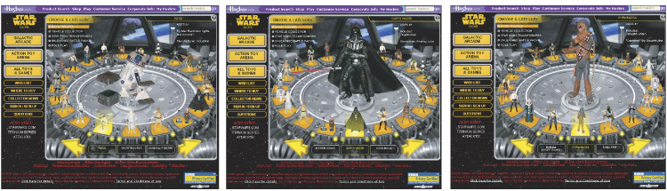 Abbildungen zeigen einen Auszug aus der Website von Hasbro, einem Hersteller