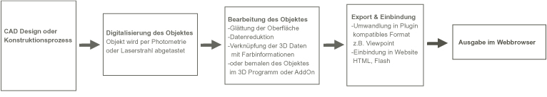 Einzelne Abläufe vom Design bzw. Konstruktionsprozess bis hin zur Darstellung im Webbrowser