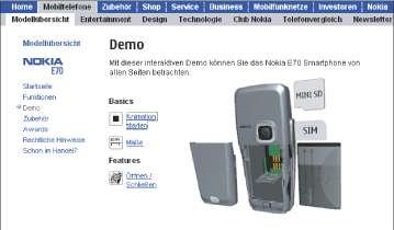 Weit verbreitet ist die Einbindung von Handlungsabläufen wie z.B. bei dem rechts abgebildetem Beispiel eines Mobiltelefons, bei welchem im Stil einer Gebrauchsanweisung der Öffnungsmechanismus, oder die Steckplätze von SIM- oder Speicherkarten mit Hilfe einer Animation veranschaulicht werden.